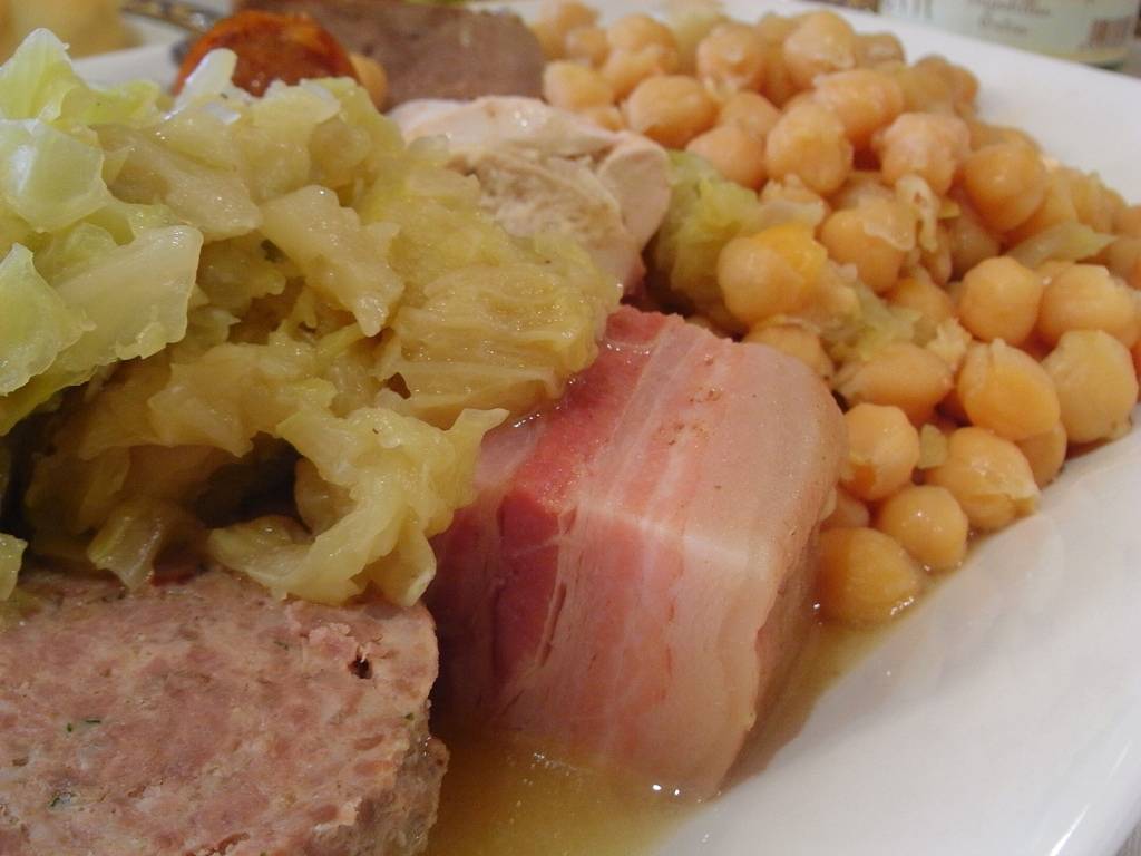 2. Cocido madrileño: para dos personas son necesarios 150 g de garbanzos, 150 g de carne de morcillo, 100 g de chorizo y otros 100 de morcilla, 100 g también de tocino y otros tantos de jamón, un hueso de jamón, 2 patatas, 2 zanahorias, medio repollo, aceite, ajo y sal. Cómo prepararlo: el truco para que la piel y la textura de los garbanzos sea perfecta es dejar los garbanzos a remojo en agua toda la noche anterior, una vez hayamos hecho esto, los escurrimos y en una olla con agua abundante introducimos la carne, el tocino, el hueso y el jamón hasta que el agua hierva. En es momento, quitamos la espuma que se ha formado y echamos los garbanzos, tapamos la olla y dejamos que se cocine unos 30 minutos. Una vez transcurrido este tiempo, sacamos un poco del caldo y lo ponemos en otra cazuela en la que añadiremos el repollo bien picado, el chorizo y la morcilla y lo dejamos cocer durante 15 o 20 minutos. Mientras tanto, podemos ir pelando las patatas y partiéndolas en trozos grandes junto con las zanahorias para meterlas en la misma olla donde están los garbanzos y lo dejamos cocer todo junto unos 15 minutos más. Y por último, en una sartén con un chorrito de aceite freímos unos ajitos picados, sacamos todo bien escurrido de la olla y lo colocamos en una fuente para verter por encima en sofrito y ¡Listo para disfrutar de un plato rico, consistente y sabroso!