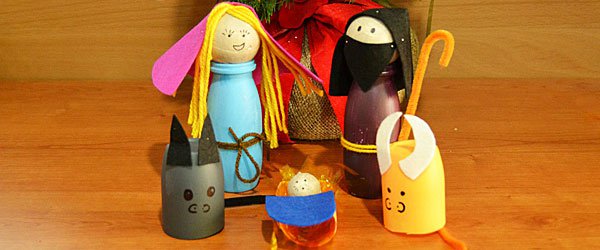La Navidad no tiene sentido sin el Nacimiento, por eso os contamos cómo hacer uno, en poco tiempo y por muy poco dinero. Basta con tener tres botes de yogur líquido (de esos que les gustan a los niños) y dos de petit suise, tres bolas algo más pequeñas que las de golf (las más recomendables son las de poliestireno, porque se pueden pegar, pintar, etc.), rotuladores de colores, témperas de las que se van fácilmente con agua y pinceles, pegamento, retales de telas de colores, tijeras y lana.