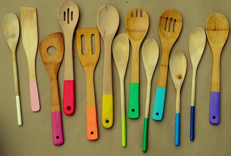 Para darle un toque de color a nuestra cocina, solo tenemos que comprar pintura acrílica (o cualquier otra que sea resistente al agua) y con un pincel podemos dibujar tantas cosas como nuestra imaginación nos permita. Lo recomendable es pintar solo el palo de la cuchara de madera y no la parte que tiene contacto con la comida. El resultado será divertido y original.